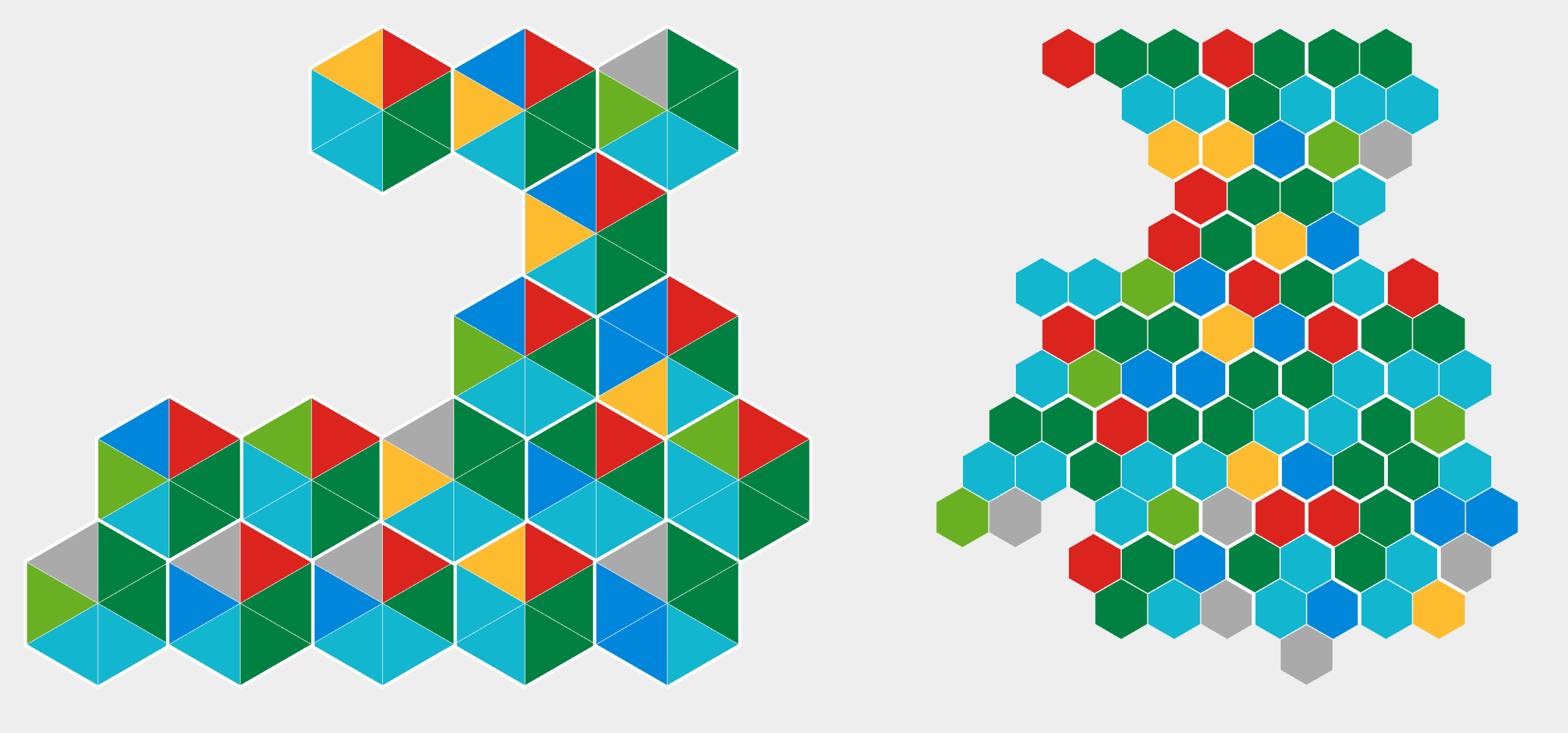 There are 2 hexmaps here. The first uses a single hexagon to represent each constituency, with each MS represented by a triangle covering 1/6 of the hexagon. The second uses 6 hexagons to represent each constituency, with one MS per hexagon.